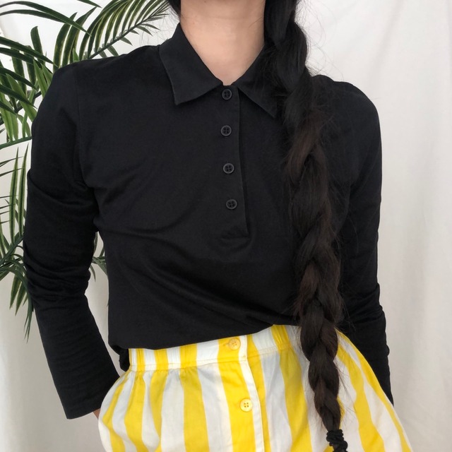 色:ブラック (*商品写真はできる限り実物の色に近づけるようにしていますが、お客様のお使いのモニター設定、お部屋の照明等により実際の商品と色味が異なる場合がございます。) 寸法:M 胸囲31cm, ウエスト27cm, 前身頃49.5 cm, 後ろ身頃49cm, 肩紐25.5cm 状態:Very good *商品はヴィンテージ品ですので些少な汚れ・シミ等については、ご了承下さい。 COLOR: Black (*Product pictures are trying to be as close to the real color as possible, but the actual product and color may differ due to your monitor settings, room lighting etc.) MEASUREMENT: M Bust: 31cm, Waist: 27cm, Front length: 49.5cm, Back length: 49cm, Strap: 25.5cm CONDITION: Very good *Since products are vintage items, please understand about minor dirt, spots, etc.
