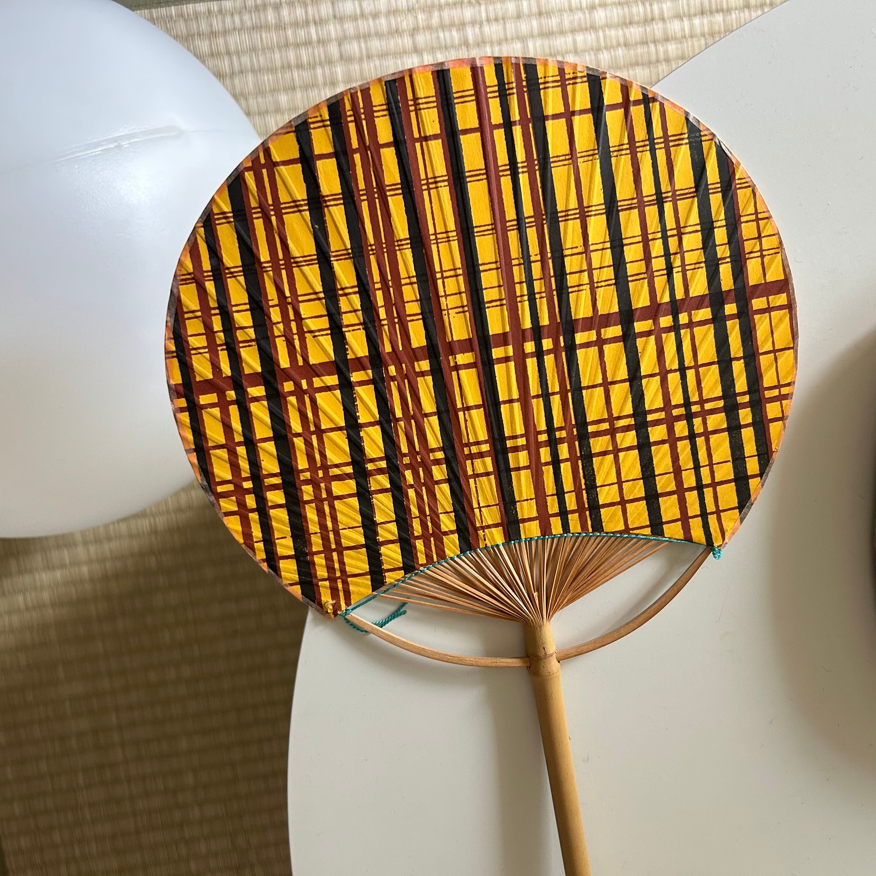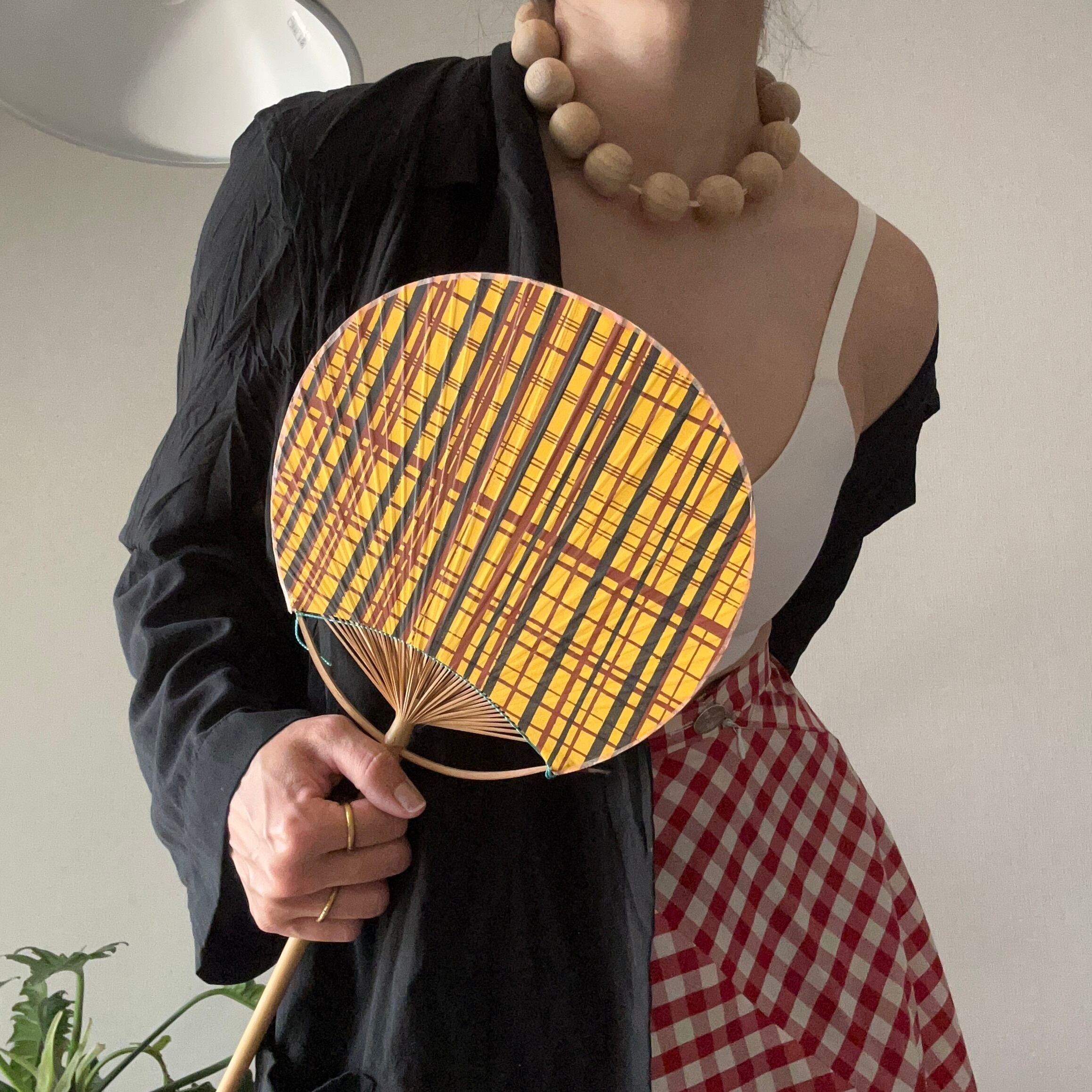 VINTAGE YELLOW TARTAN HANDFAN